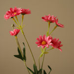 This Pink Small Daisy Flowers features multiple delicate blooms in a warm pink hue, each with a soft, velvety texture and a bright yellow center. The blossoms are arranged on slender, flexible green stems, which measure 50 cm in height, complemented by elongated green leaves.