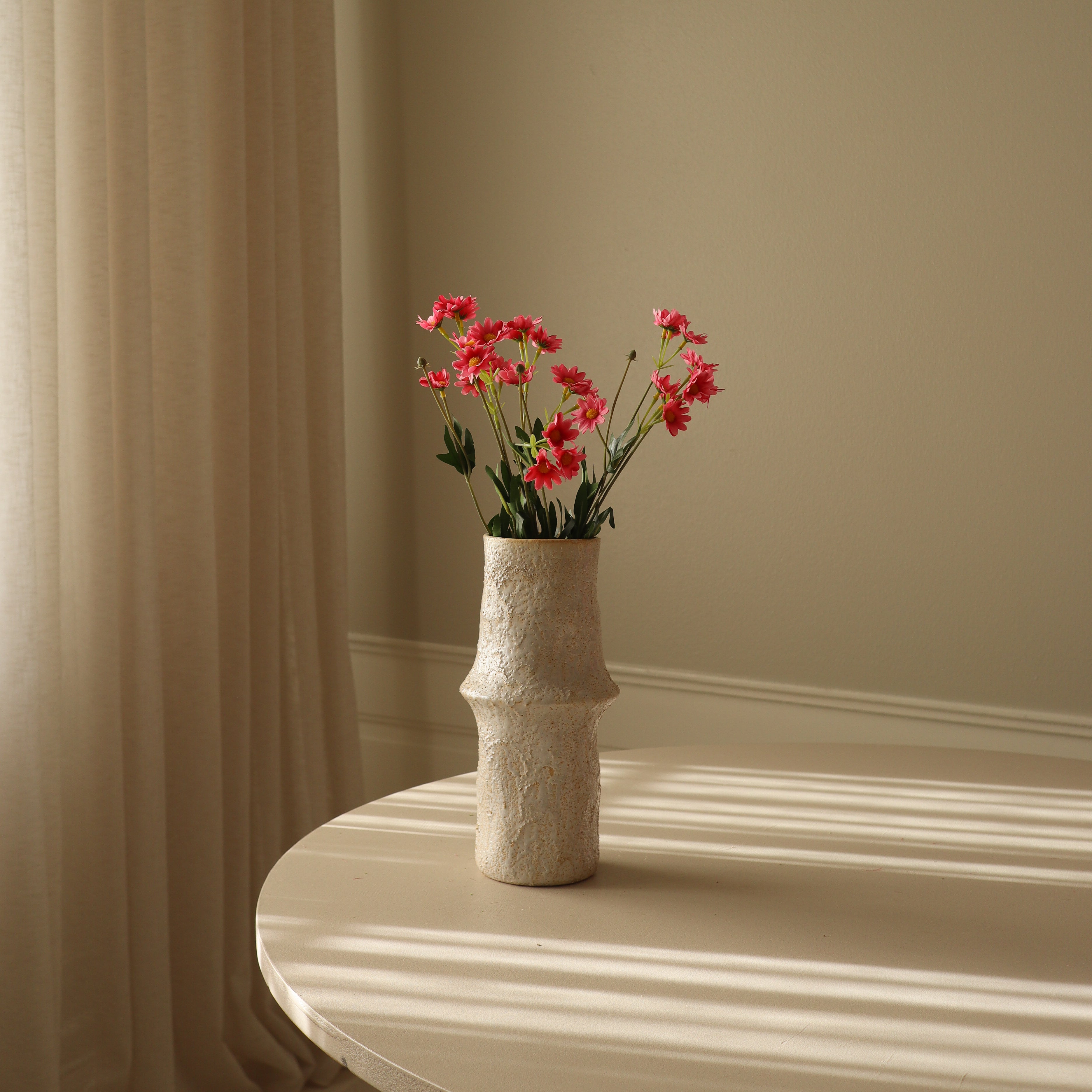 The Ceramic Earth Vase featured in the image measures 30.5 cm in height and 10 cm in diameter.