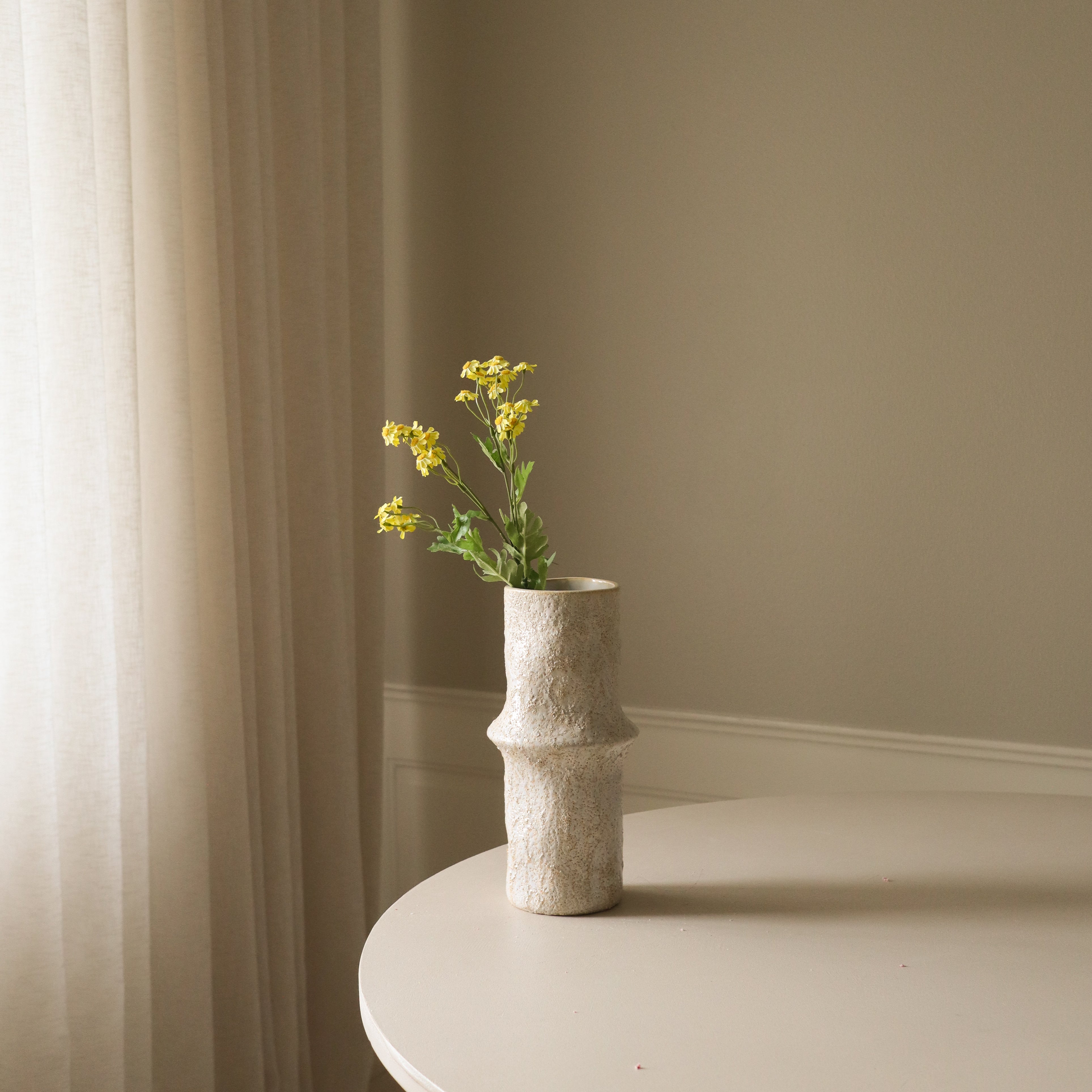 The Ceramic Earth Vase featured in the image measures 30.5 cm in height and 10 cm in diameter.
