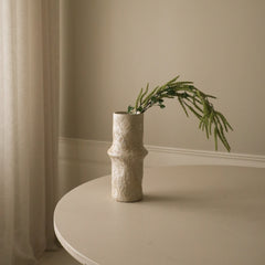 The Ceramic Earth Vase featured in the image measures 30.5 cm in height and 10 cm in diameter.