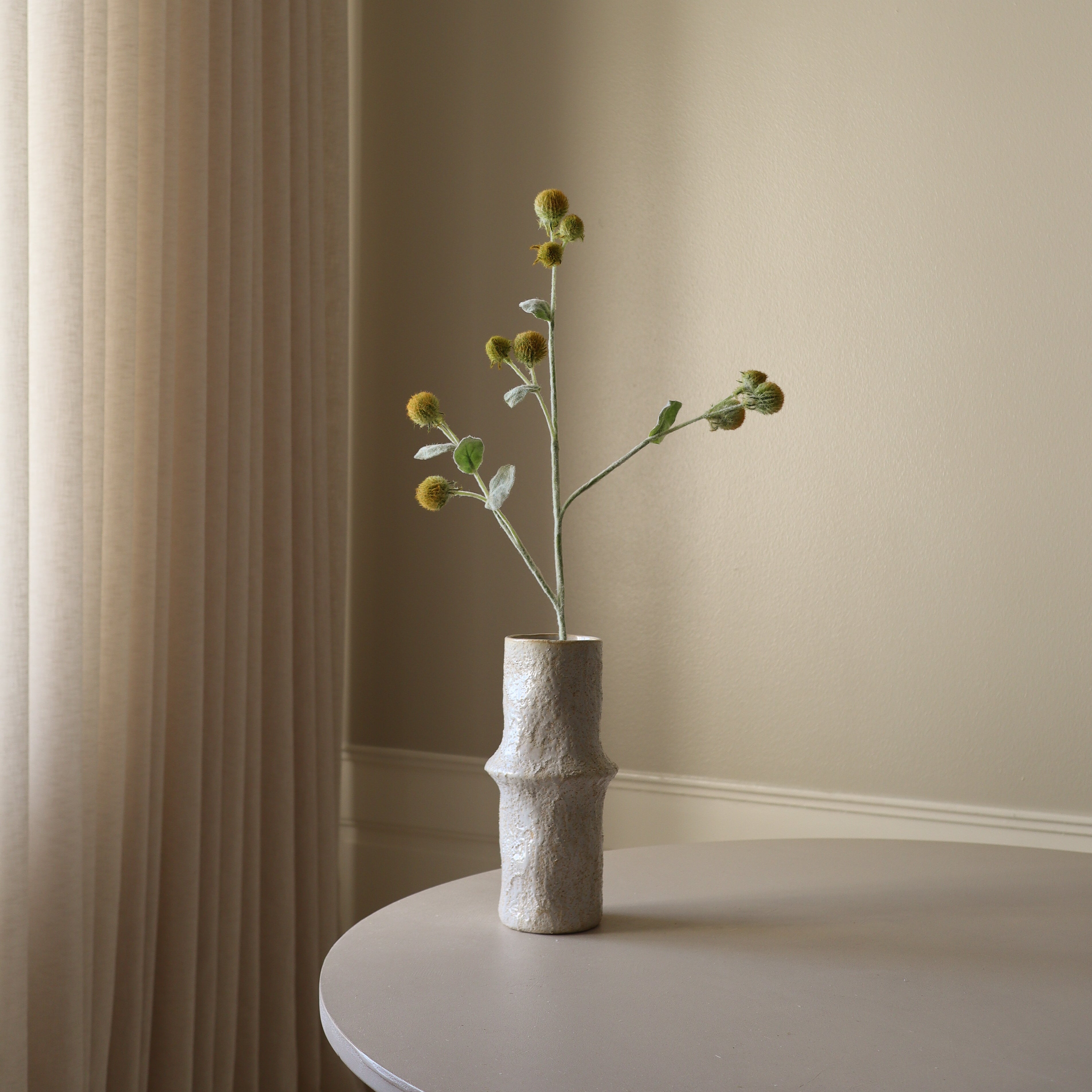 The Ceramic Earth Vase featured in the image measures 30.5 cm in height and 10 cm in diameter.